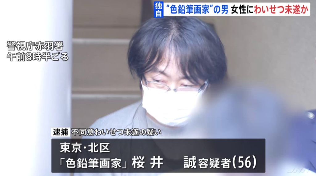 東京・北区の「色鉛筆画家」桜井誠容疑者(56)は今年9月1日の未明、自宅近くの路上で帰宅途中の20代の女性に抱きつき、わいせつな行為をしようとした疑いがもたれています。